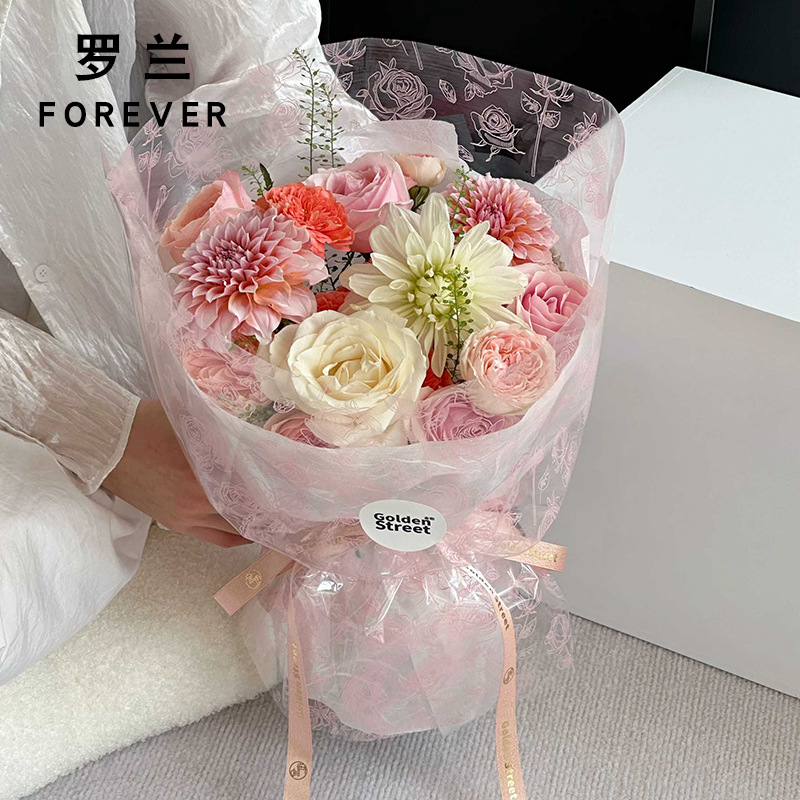 罗兰水晶玫瑰OPP鲜花包装纸玻璃纸透明印花花艺花束鲜花包装纸