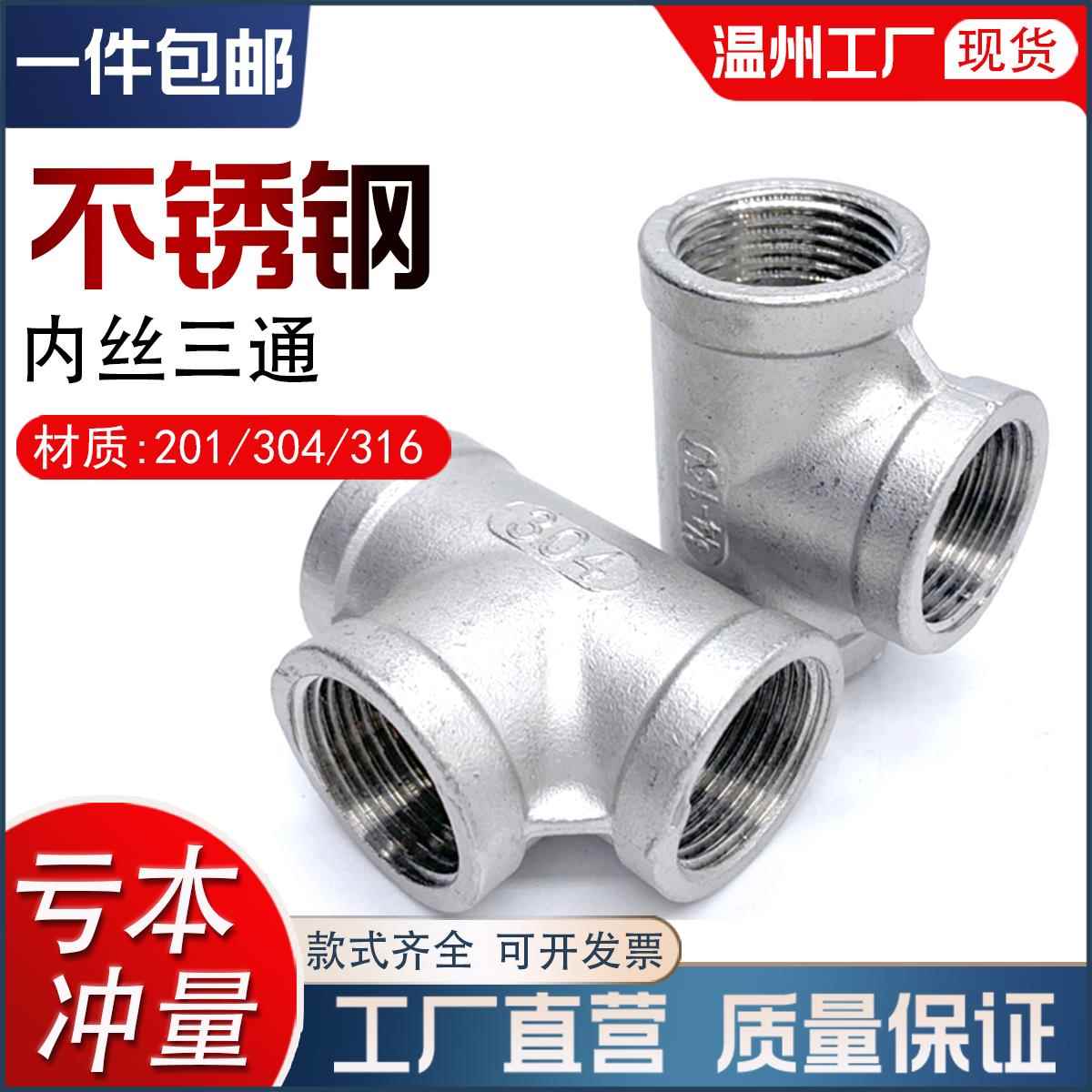 304不锈钢丝扣三通内丝3通内螺纹接头4 6分1寸内牙等径丝口水管件