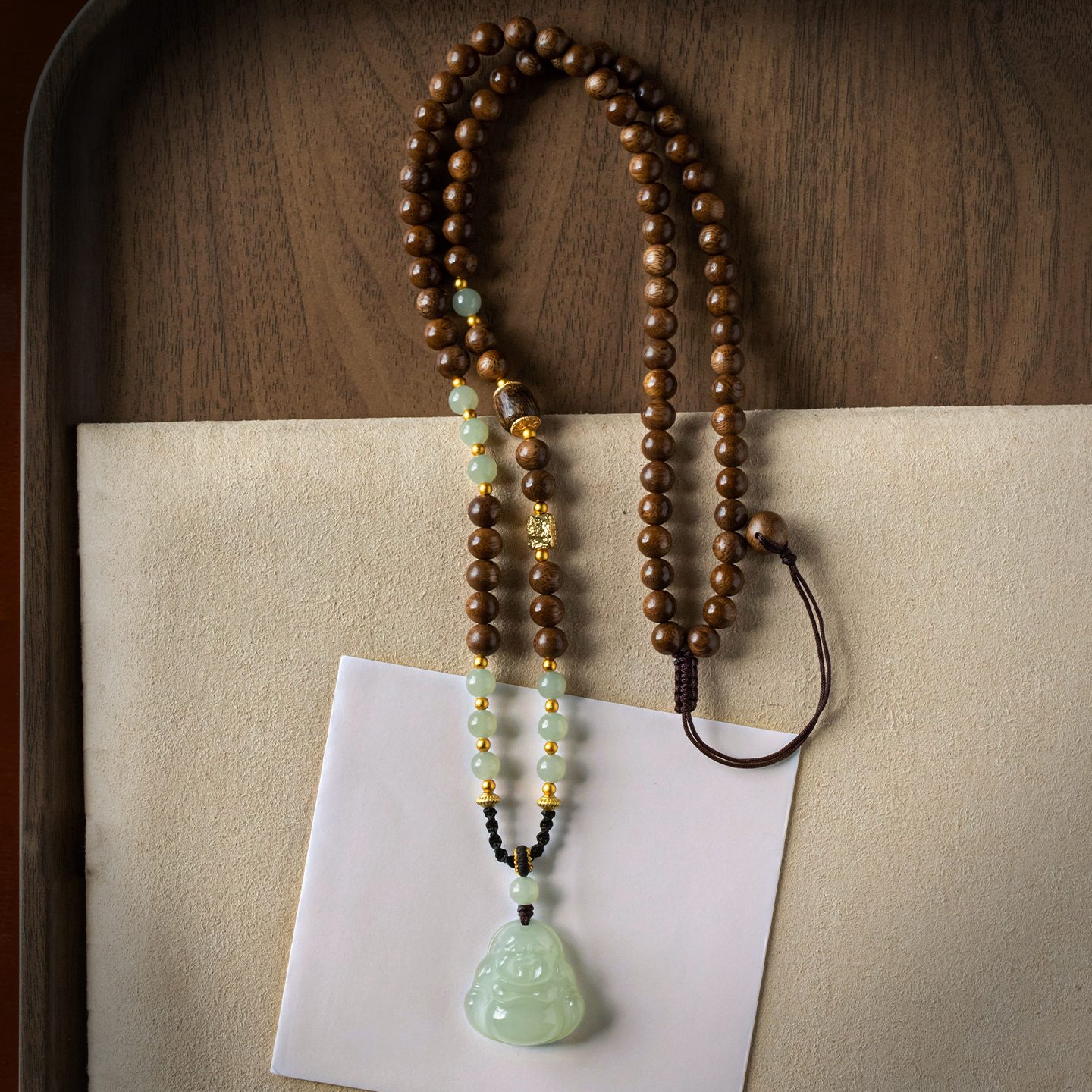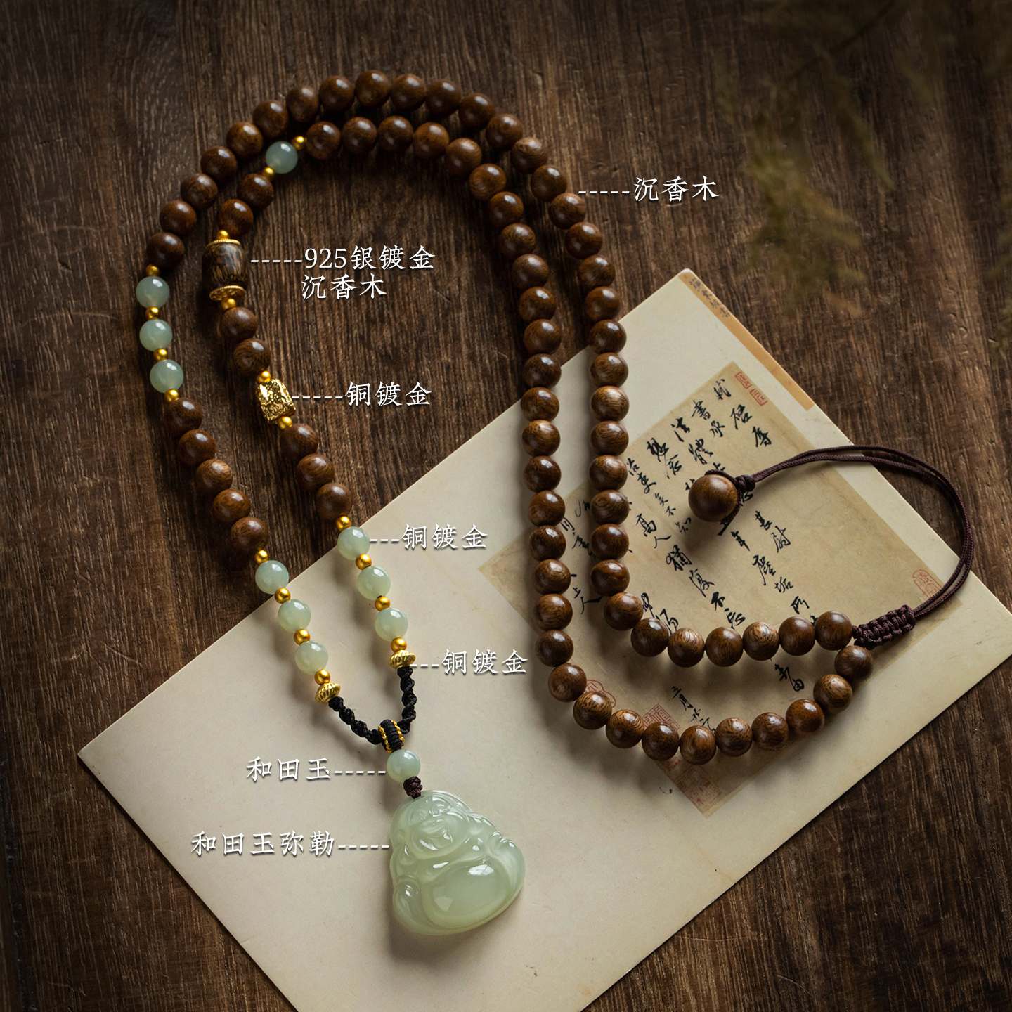 大善堂沉香木全珠项链毛衣链天然和田玉佛公吊坠全手工吊坠绳男女