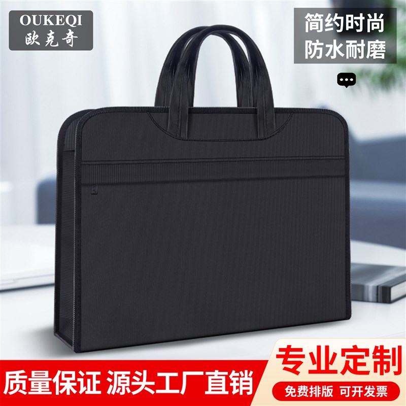 手提文件袋商务公文包大容量会议培训资料袋牛津布R办公包定制log