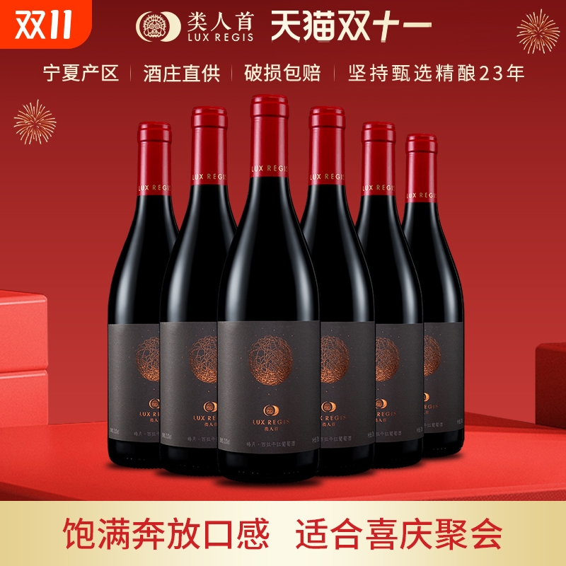 类人首 宁夏红酒 皓月西拉橡木桶干红葡萄酒750ml*6支装