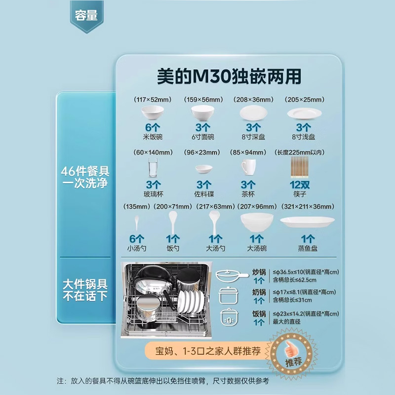 【洗碗机首选】美的洗碗机M30台面嵌入式小型免安装消毒烘干一体