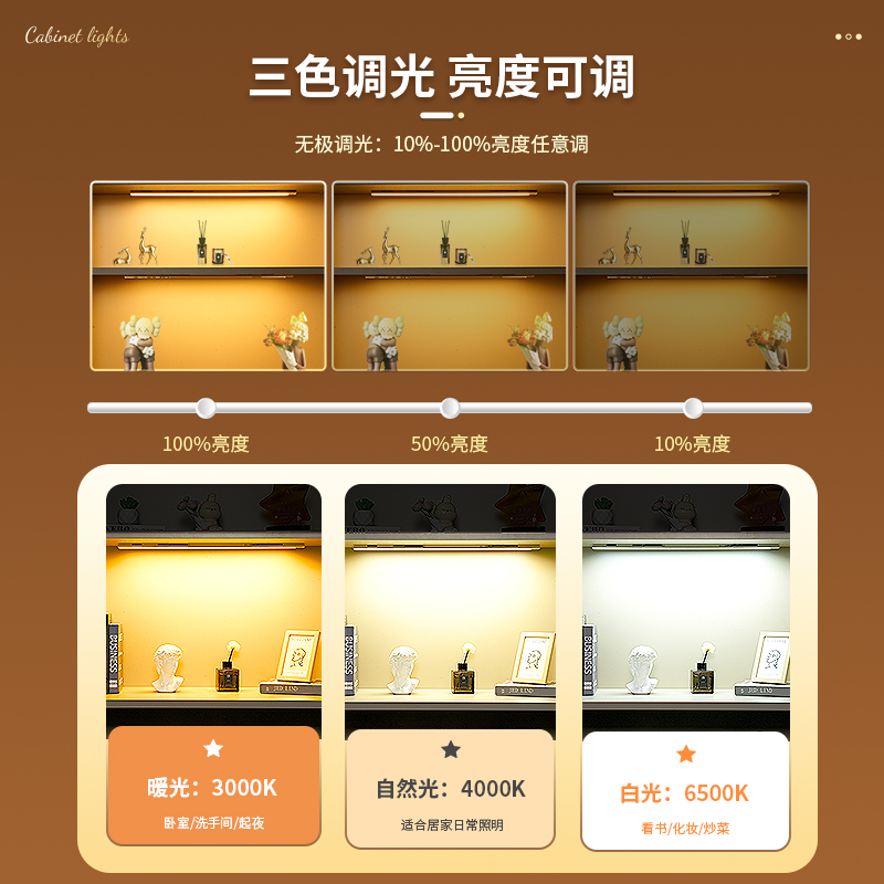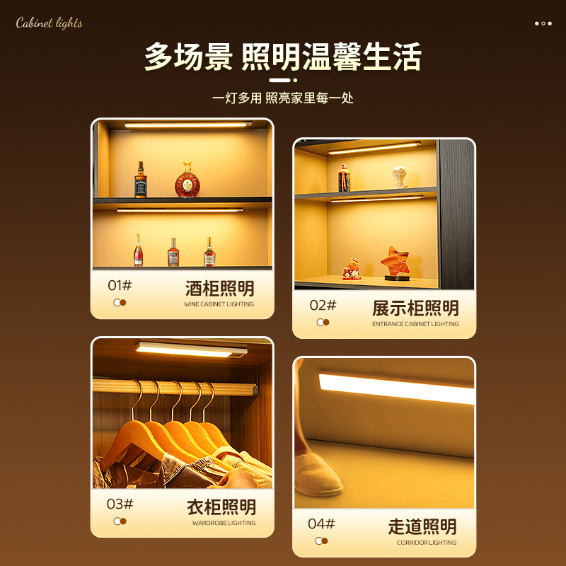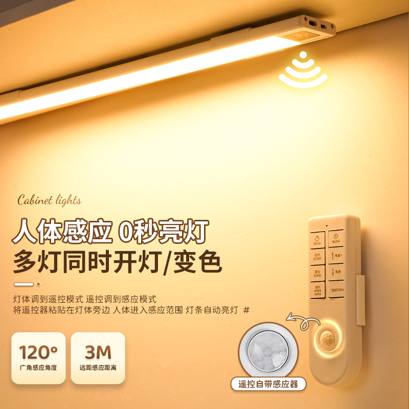 人体感应遥控灯带自粘充电无线磁吸展示柜橱柜酒柜led感应灯灯条