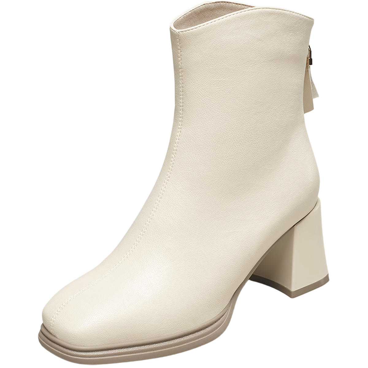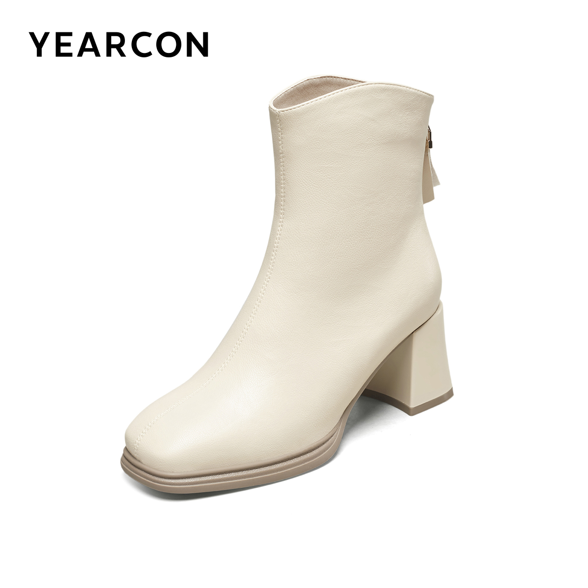 意尔康女鞋2025冬季复古法式短靴粗跟气质显瘦单靴及踝靴女士皮鞋
