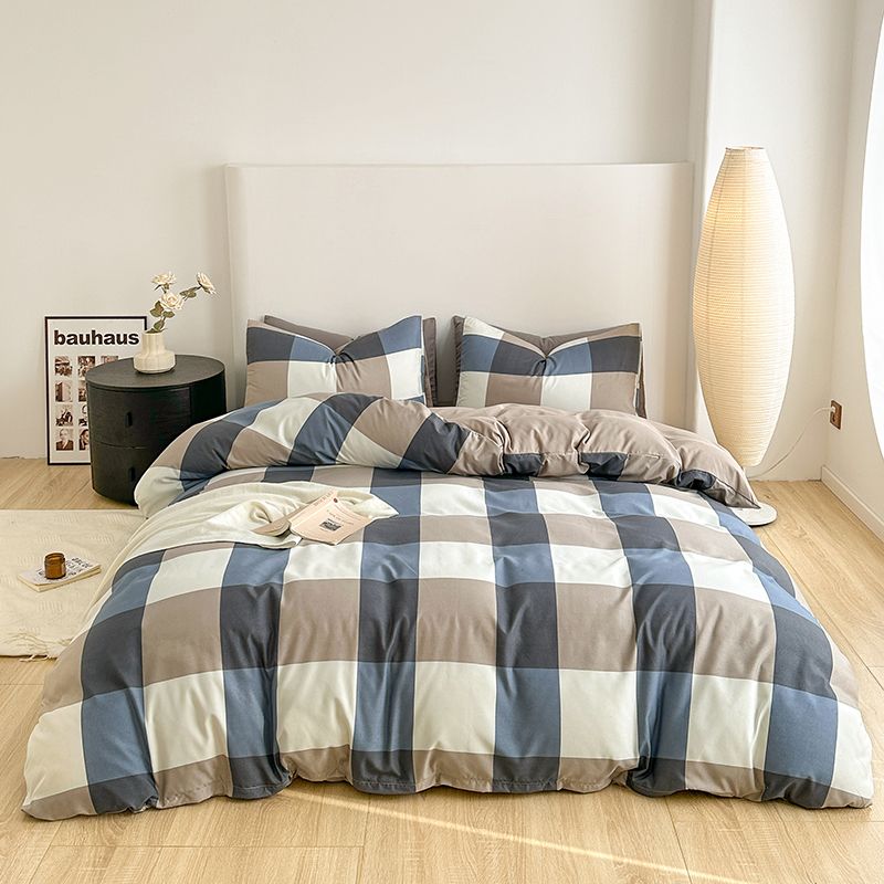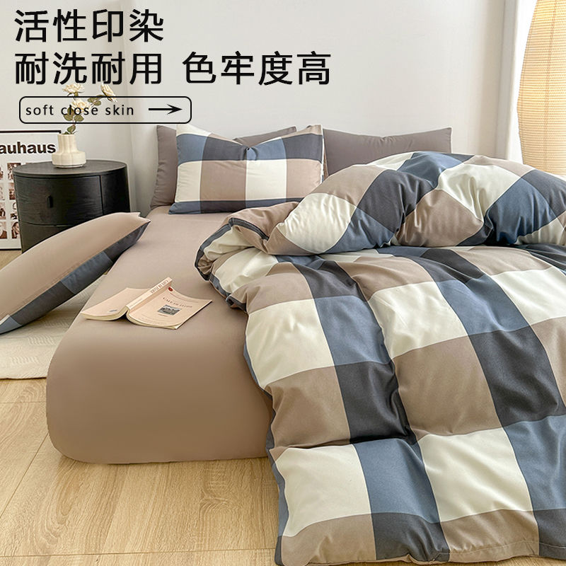 学生宿舍水洗棉四件套方格被套床上用品单人床单款2025年新款格子