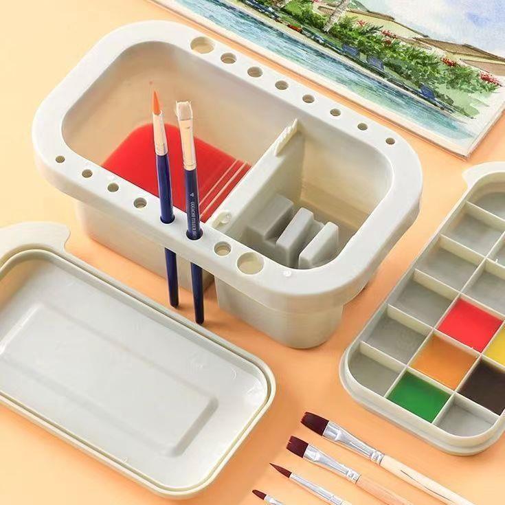 多功能三合一洗笔筒美术水彩油画笔调色盒丙烯颜料清洗易携带套装
