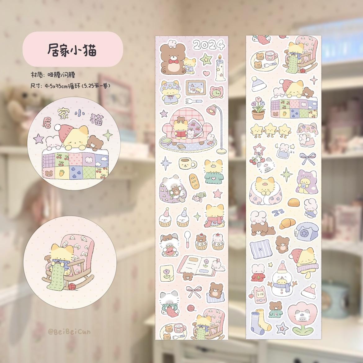 北北村 冬季 猫咖 居家小猫 循环分装切膜贴纸卷可爱小猫素材胶带
