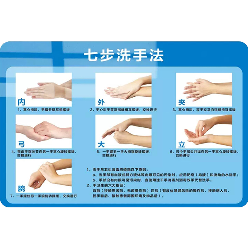 洗手间医院诊所幼儿园七步洗手法墙贴洗手消毒流程步骤示意图亚克力防水六步法6步7步标准洗手图标识提示贴