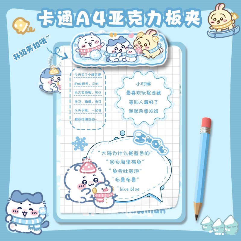 雪地吉伊卡哇垫板夹板写字板a4小学生文件夹亚克力考试文件夹