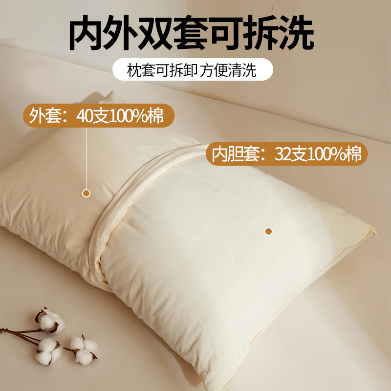 A类新疆纯棉花枕头护颈椎枕芯一对助睡眠成人全棉酒店枕蓬松侧睡