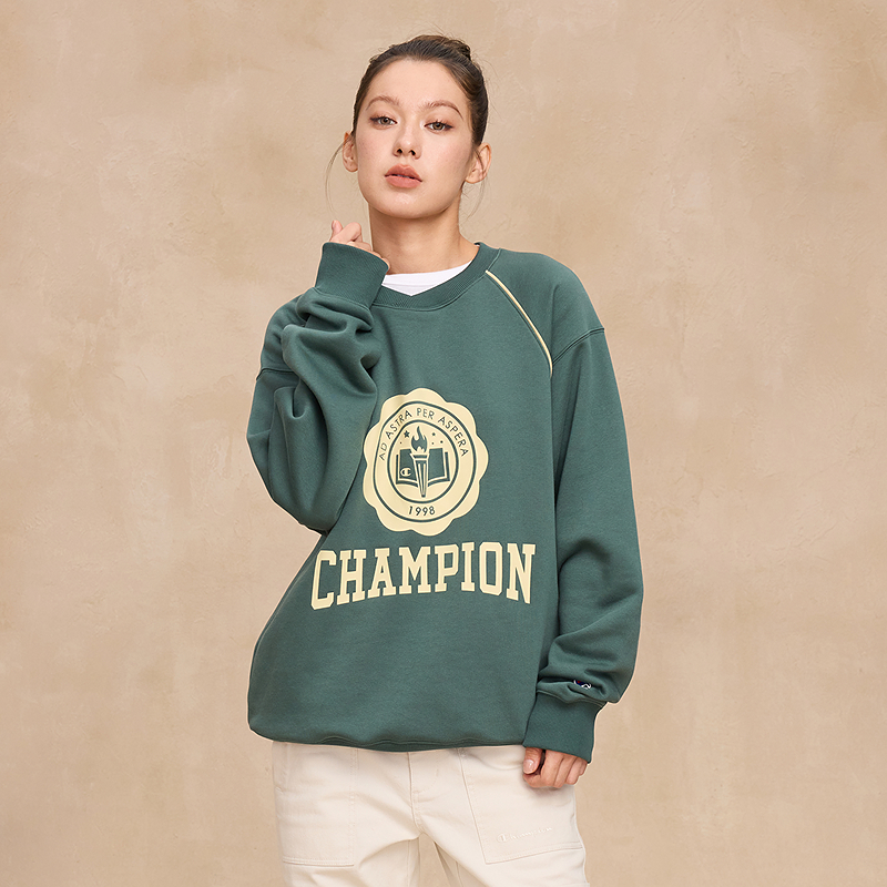 力丸同款Champion冠军加绒卫衣男25冬季新款情侣落肩袖卫衣宽松秋