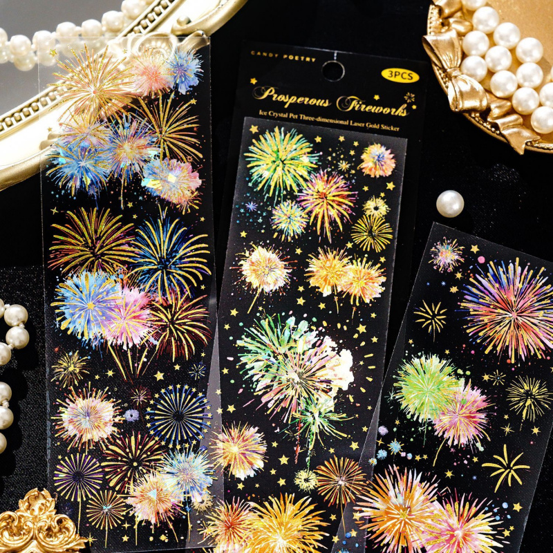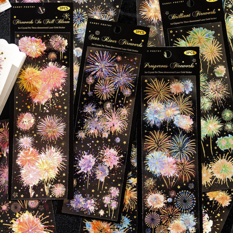 糖诗PET平张贴纸 烟花瞬间系列 烟花主题手帐装饰素材贴3张 4款