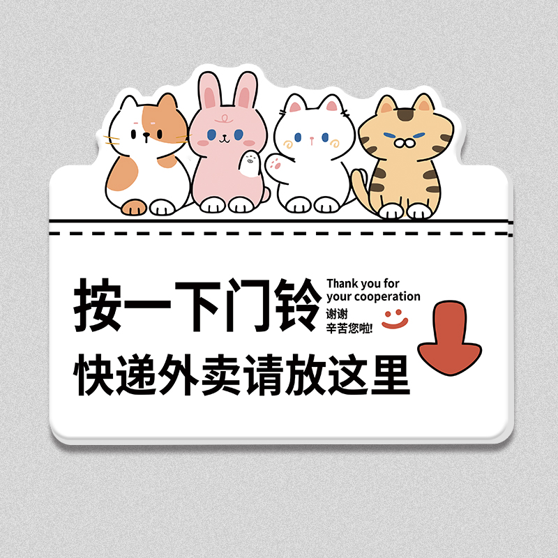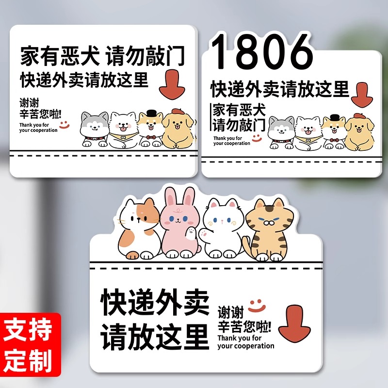 外卖放门口这里指示牌请按一下门铃内有恶犬请勿敲门快递放门口提示贴快递外卖放置处牌创意卡通亚克力定制作