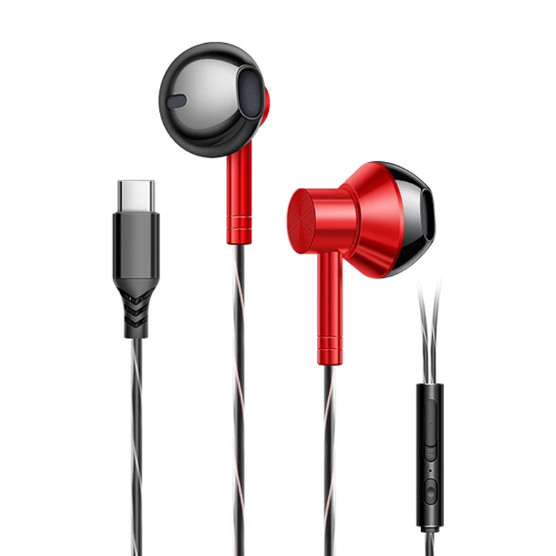 半入耳式c口耳机type-C全金属重低音质线控通话带麦耳塞有线耳机