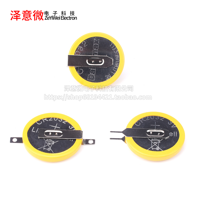 (5粒)高品质CR2032 纽扣电池 3V 带焊脚 2引脚 卧式