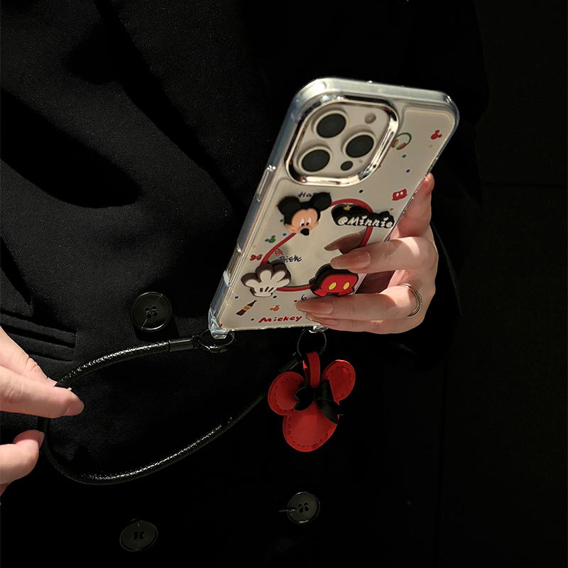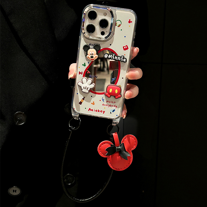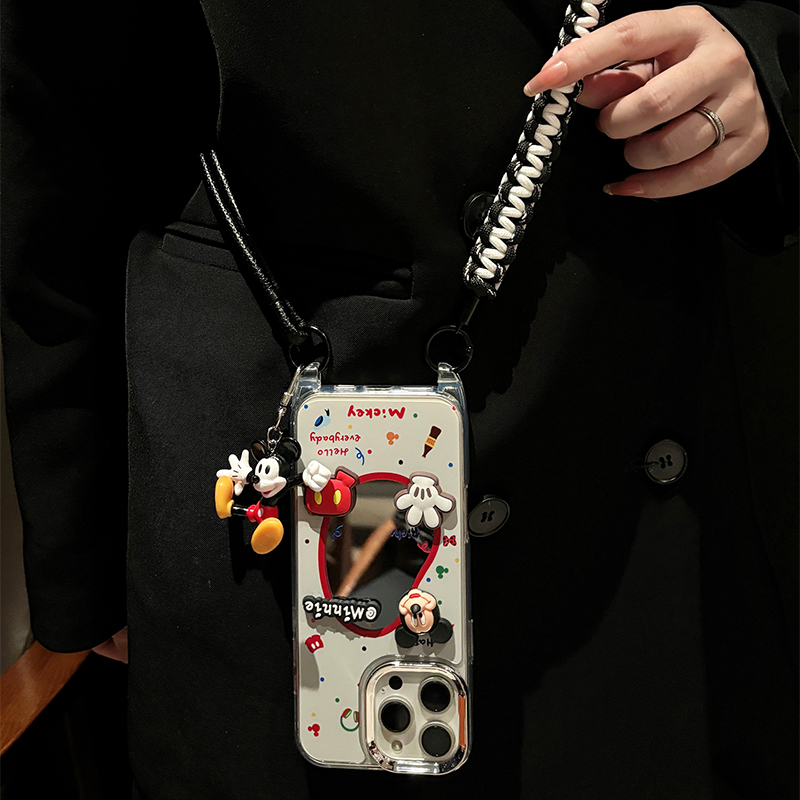 手掌米奇镜子适用苹果16promax手机壳华为pura80荣耀400pro小米15挂件vivos30斜挎opporeno14可背带x200卡通p