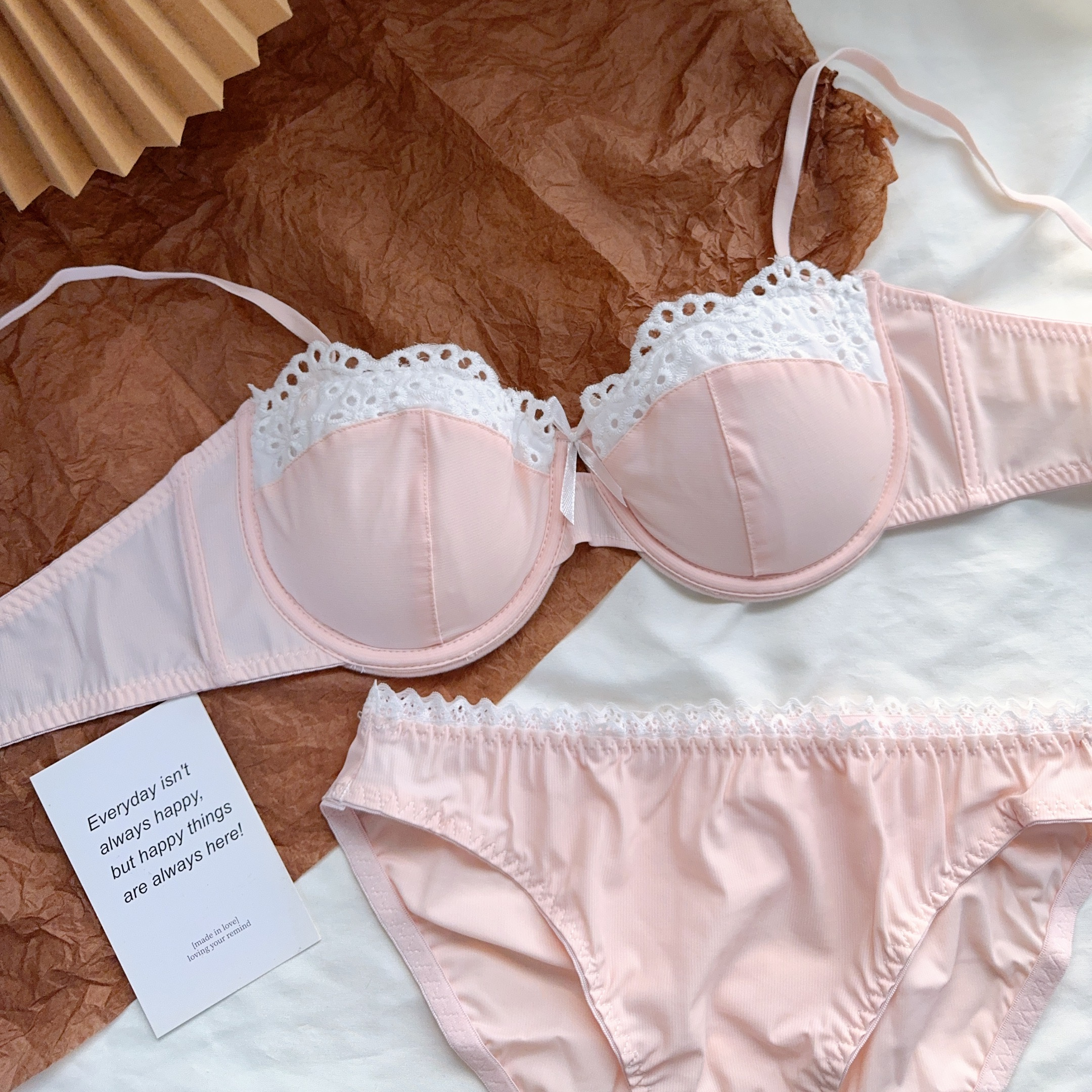 法式性感半杯内衣女薄款蕾丝纯欲风小胸聚拢上托防下垂文胸罩套装