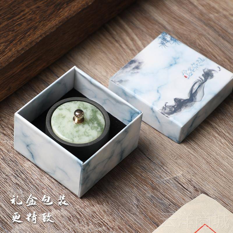 正品曹一阁玉石盖小砚台墨罐小楷书带法不专用墨池迷你小巧干墨练