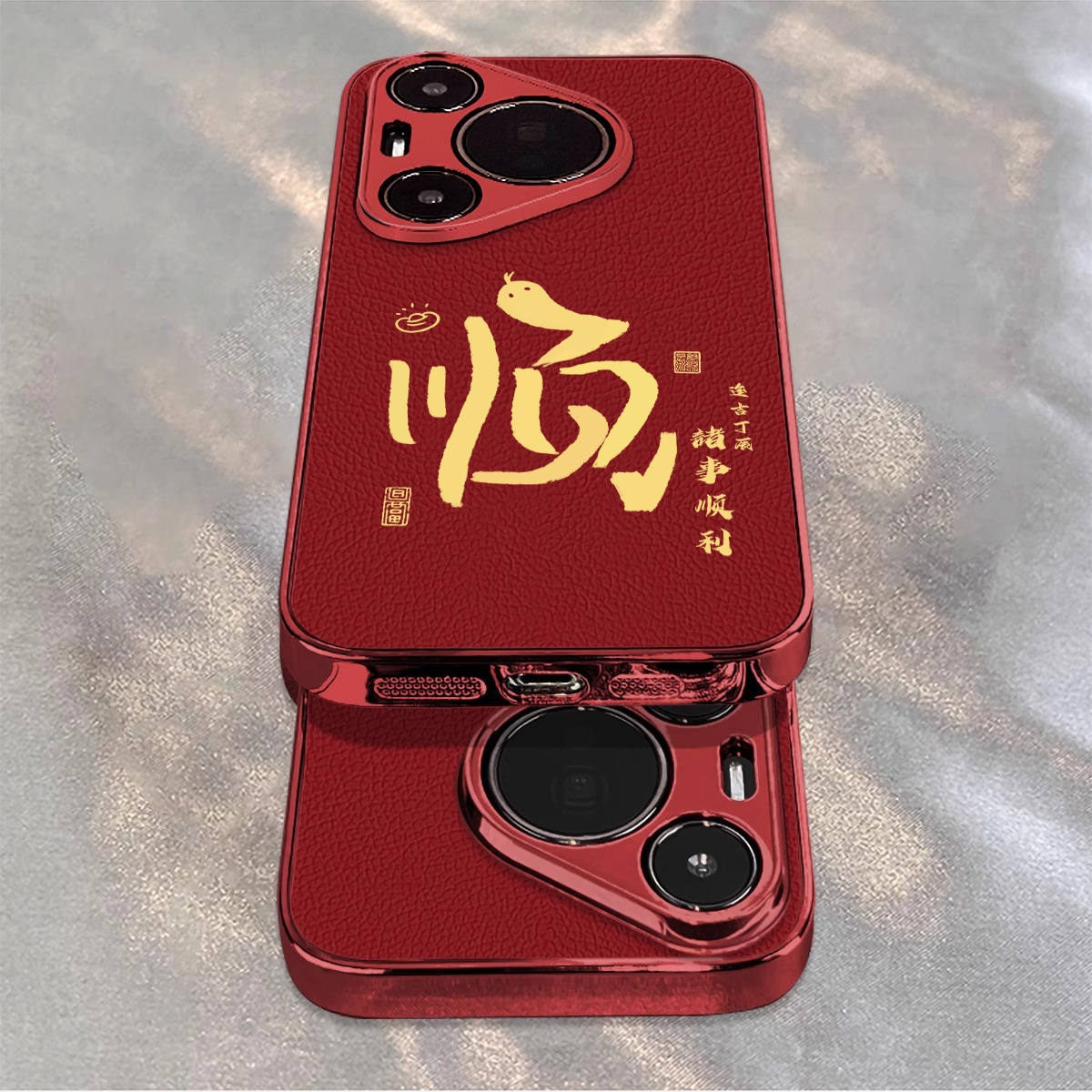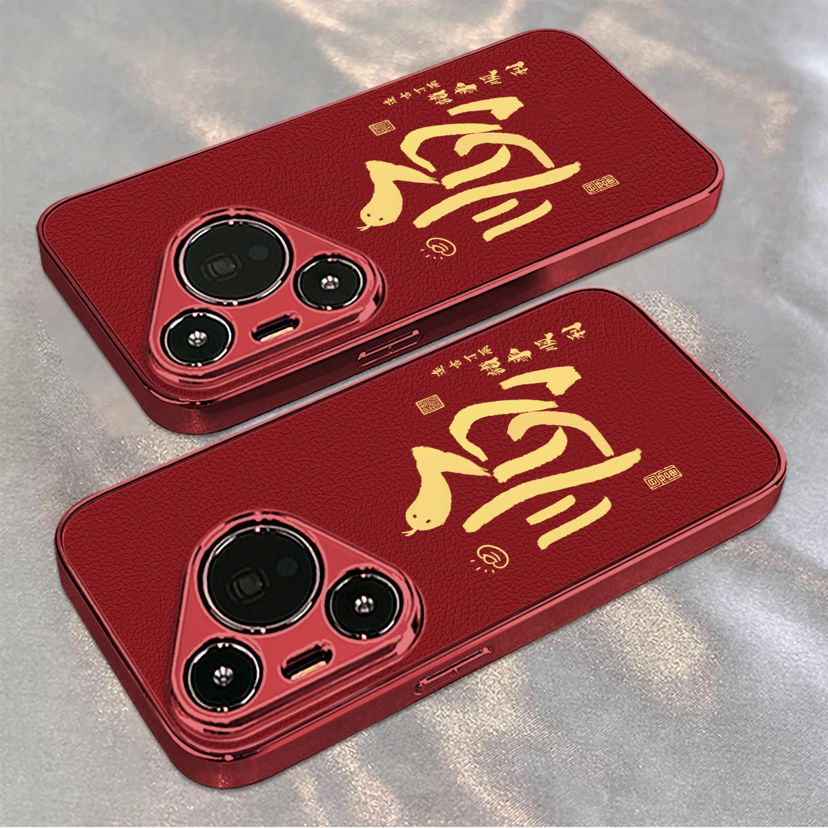 蛇来运转适用华为pura70pro+手机壳新款ultra红色电镀小羊皮p30高级40感p50防摔P60品新年男女蛇年全包P70套