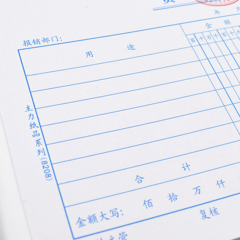 主力8208费用报销单24K支付证明粘贴付款申请收支会计记账凭证