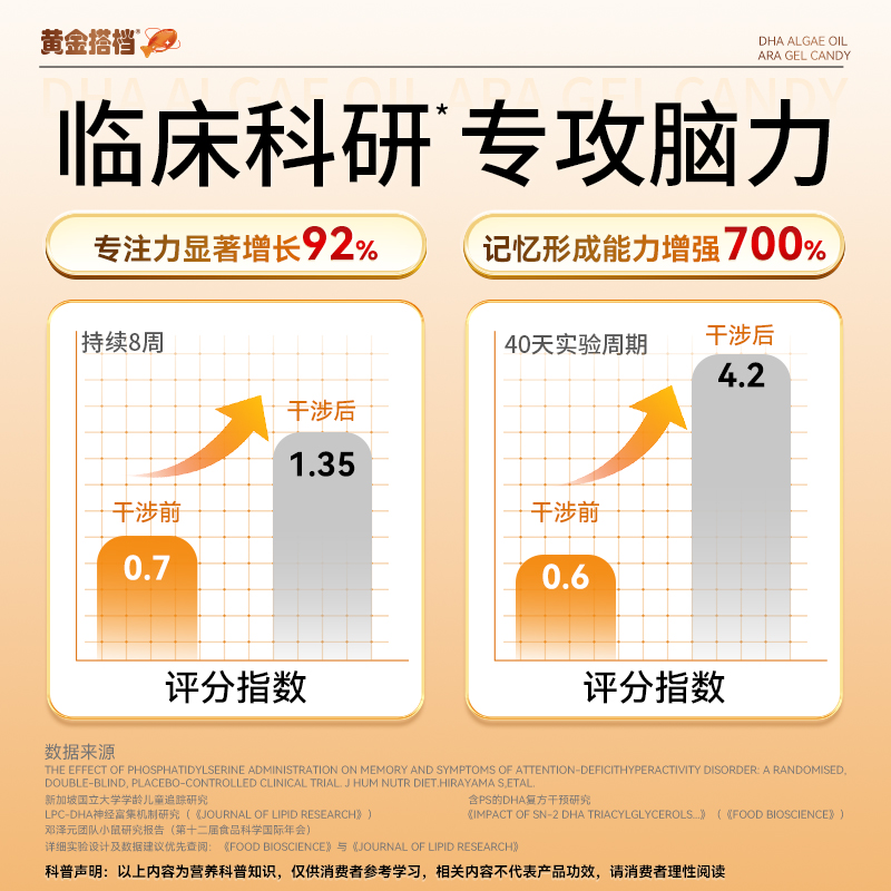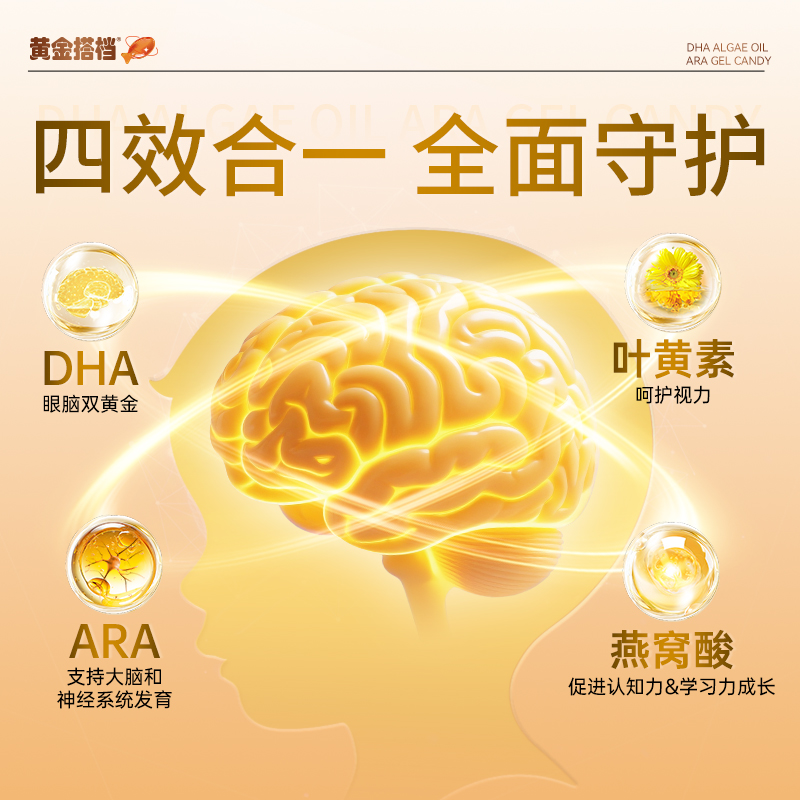 【增补脑力】黄金搭档dha藻油软胶囊核桃油凝胶糖果非鱼油脑黄金