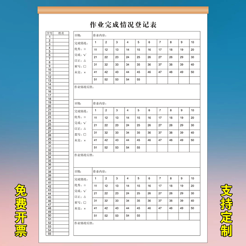 作业完成情况登记表老师家校沟通表学生情况反馈表作业完成情况表