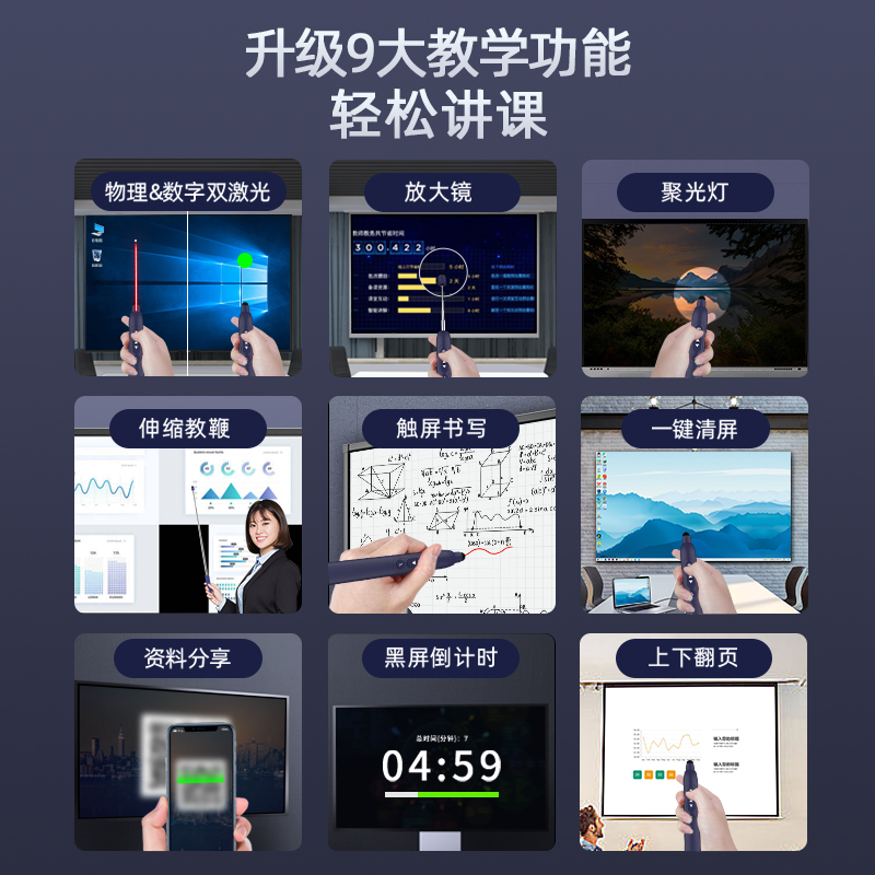易相随H168s伸缩教鞭翻页笔教师用多功能ppt遥控笔适用希沃白板笔二合一多媒体触屏笔可书写一体机电子控制笔