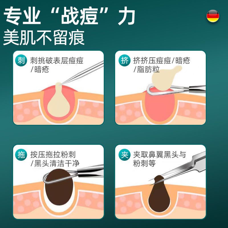 粉刺针细胞夹套装暗疮针镊子挤痘痘美容院清洁工具面部按摩脸部