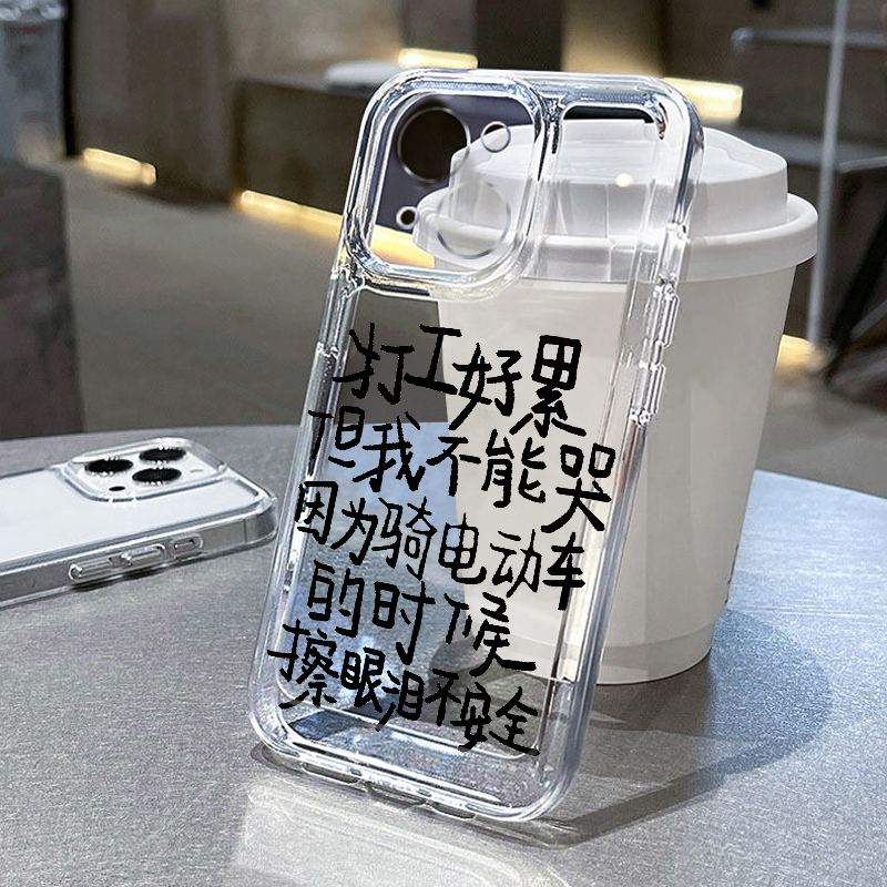打工好累但我不能哭手机壳苹果16华为mate60趣味文字iPhone15Promax小米14擦眼泪vivo不安全OPPO牛马12适用13
