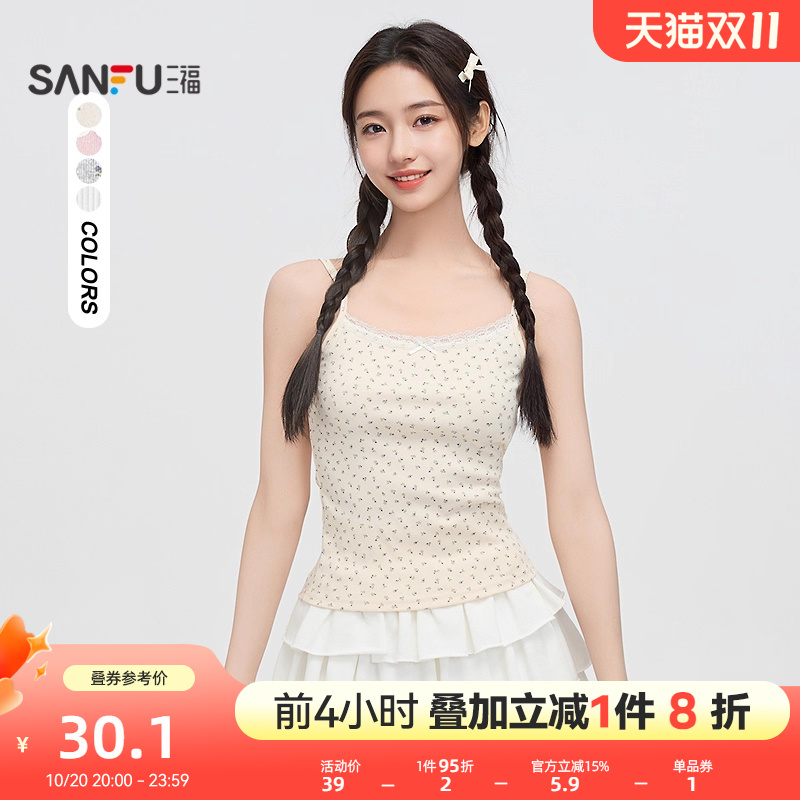 三福背心女2025新款夏季别致蕾丝拼接吊带甜美内搭上衣女装495836