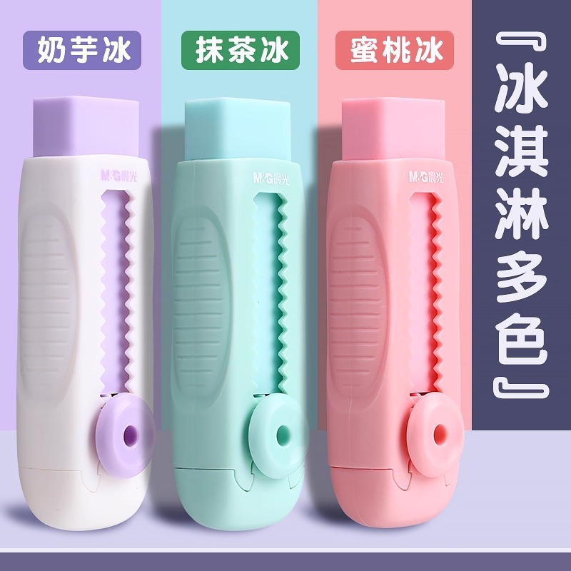 晨光推拉橡皮替换芯冰淇淋色小学生专用像皮擦推动式不留痕少屑超干净擦字成线儿童安全无毒幼儿园铅笔象皮擦