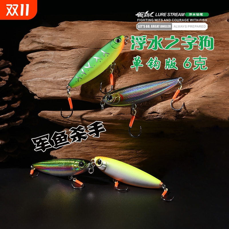 水面系铅笔炮弹路亚饵浮水之字狗单钩版绑溪流钓军鱼假饵米诺鲈鱼