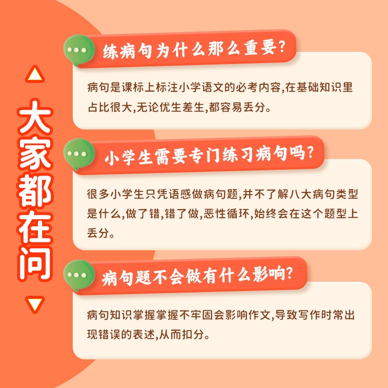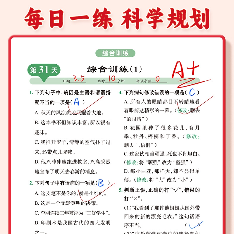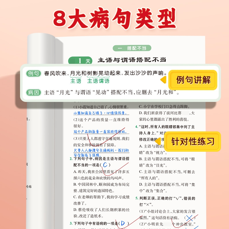 【易蓓淘工厂自营】小学语文每日一练病句专项训练全国通用版3到6年级基础题小升初必考考点病句修改综合训练八大病句突破练习册1