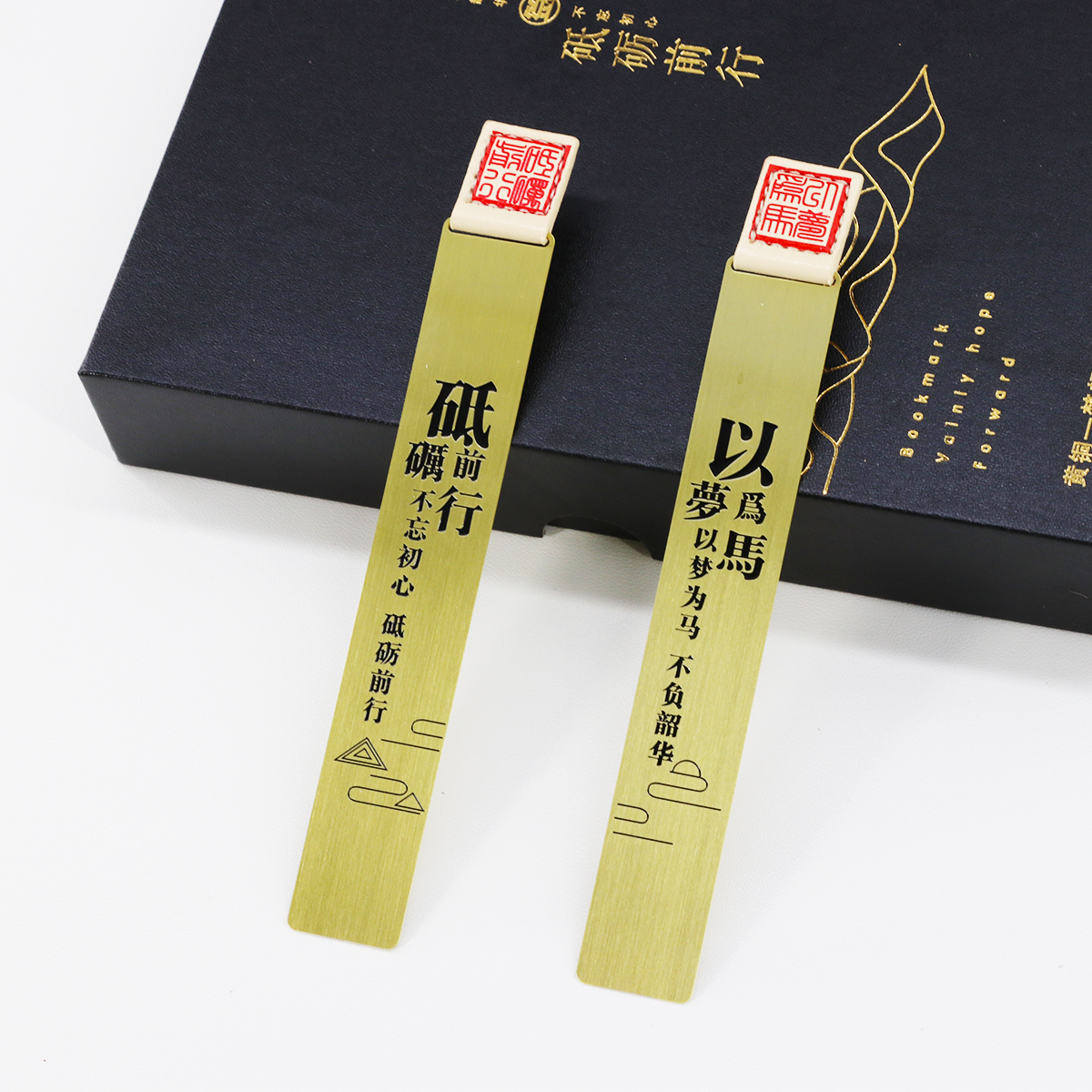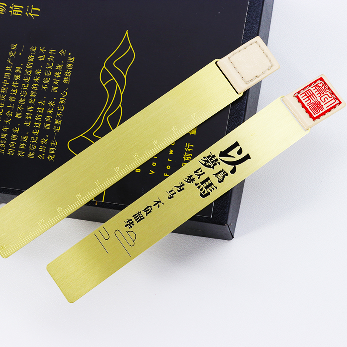 黄铜金属 直尺文创中国风礼品书签 以梦为马 砥砺前行商务高端文创节日礼品教师节精美文化礼品