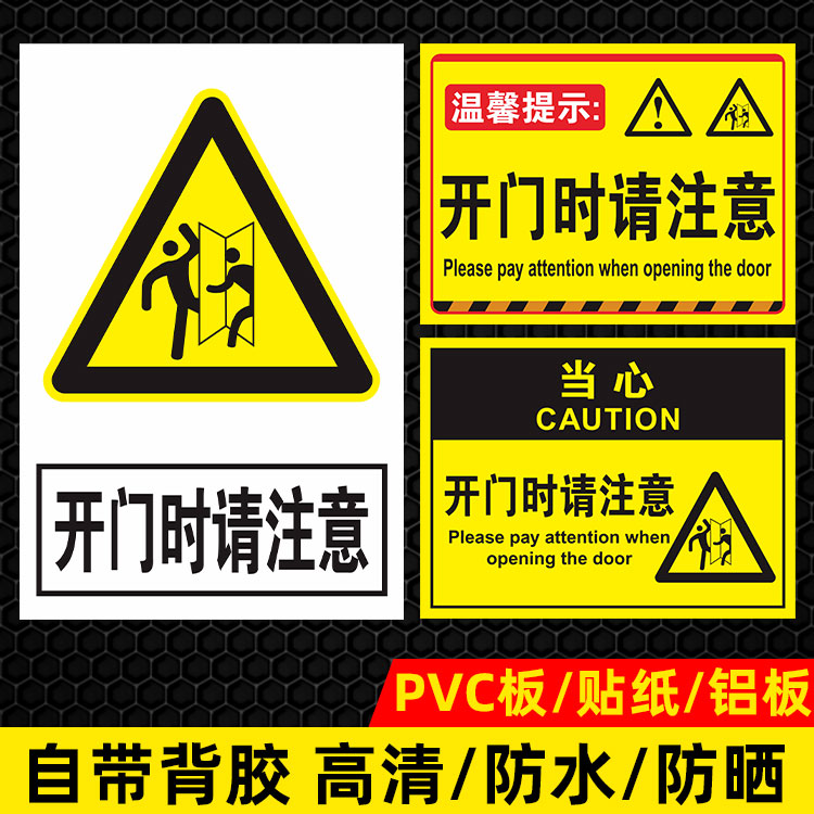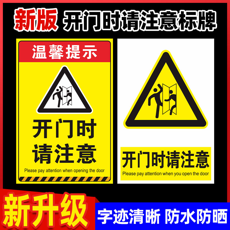 开门时请注意安全小心有人标识牌标牌警示牌指示牌提示牌标示牌危险提示警告警示标志标志牌铝板仓库反光膜