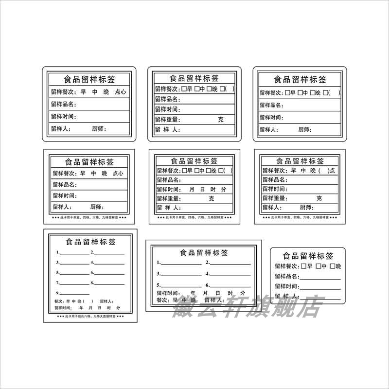 食堂食材带留样克数卡纸食品留样盒专用标签防水贴酒店学校食堂厨房可移除不粘胶白色食品效期表标签现货直发