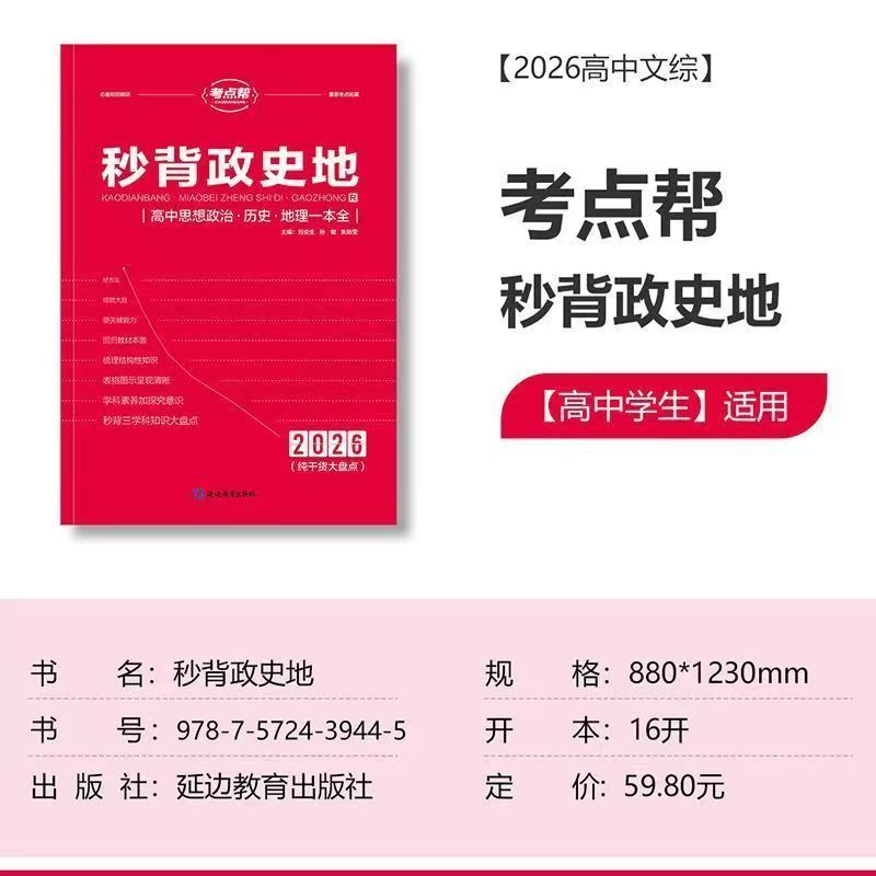 2026版考点帮秒背高中政史地高一二三政治历史地理文科综合高考复习教辅资料知识点汇总大全考点必背清单重难要点答题模板专项训练
