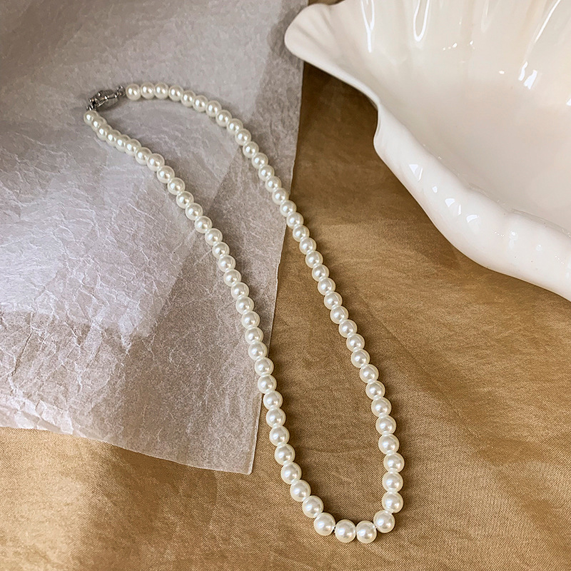 施家真多麻灰色珍珠项链颈链轻奢小众毛衣链配饰女款2025新款爆款