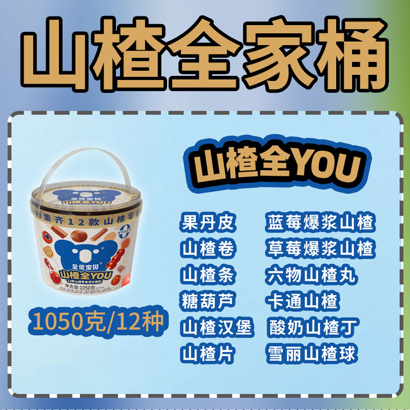 山楂桶1050g山楂球果丹皮糕六物山楂丸爆浆酸甜果干零食全家桶