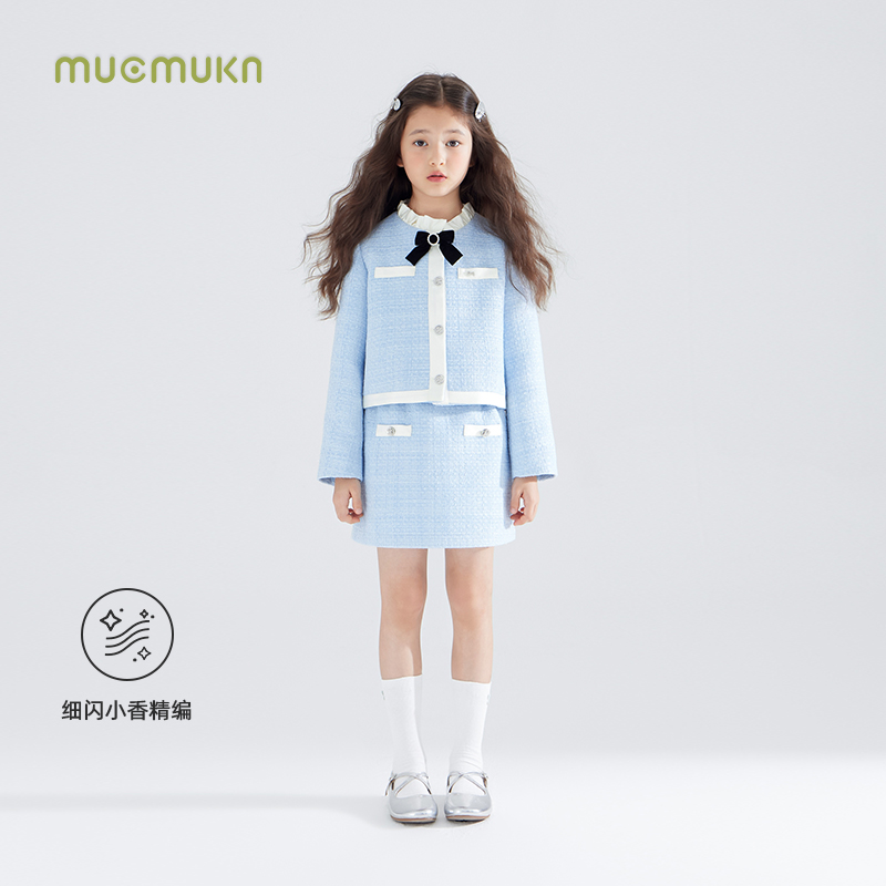 【蓝色月光】细闪小香风外套女童短外套粗花呢气质千金上衣腰裙