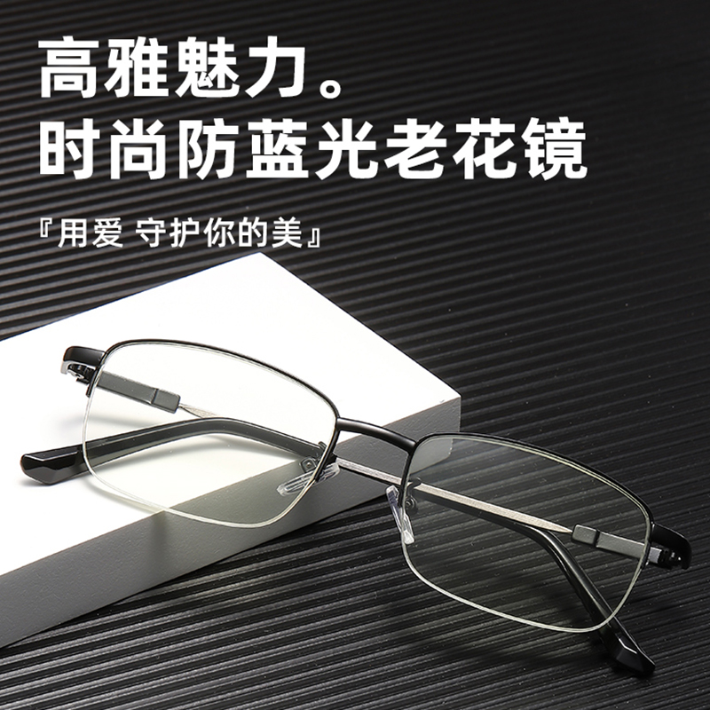 半框远近两用老花镜男渐进多焦点老光眼镜智能变焦防蓝光远视镜