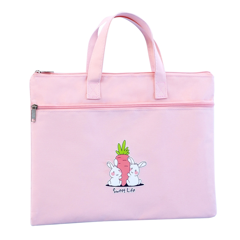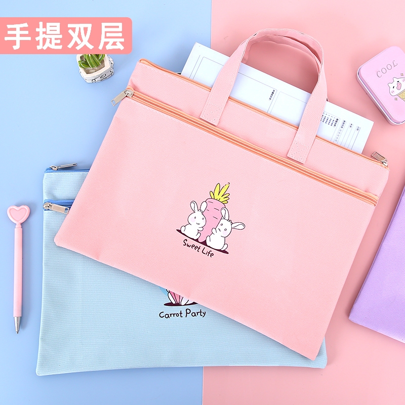 可爱卡通A4文件袋拉链大容量手提资料袋多层试卷收纳袋牛津帆布中小学生用美术补习补课包孕检产检病历袋防水