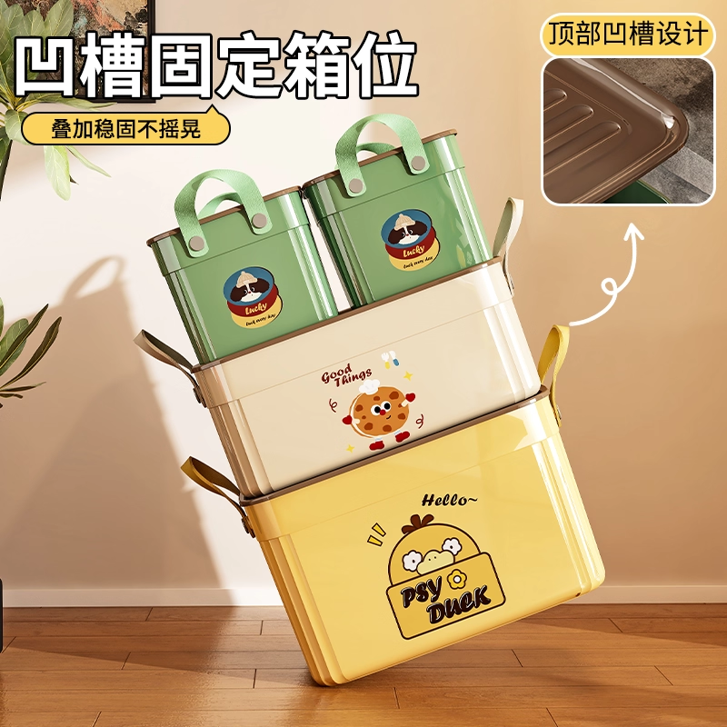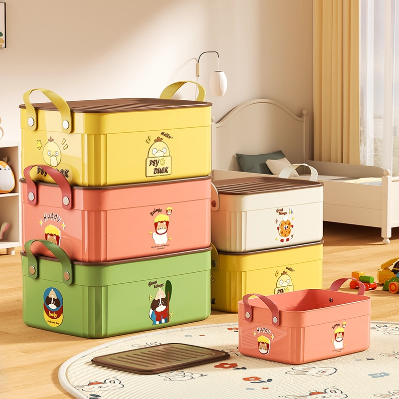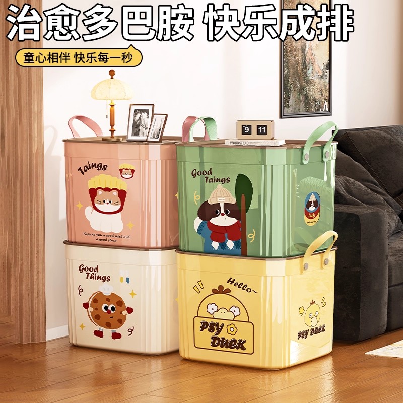 大容量带盖杂物收纳盒桌面整理箱新款家用卡通收纳箱子手提高颜值