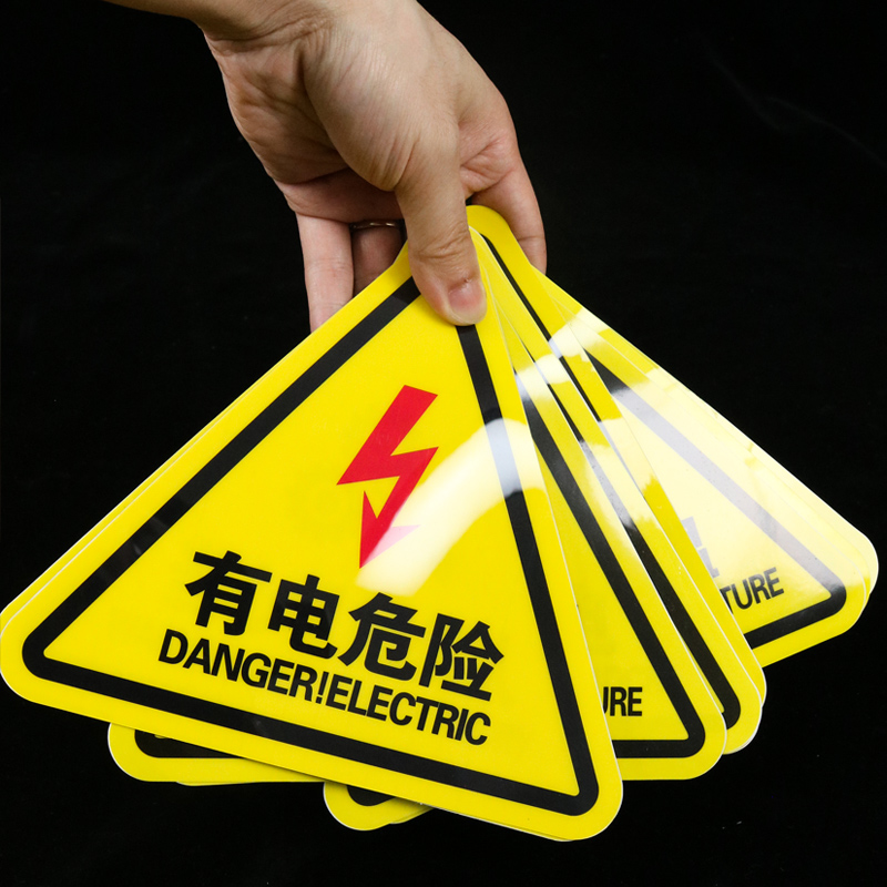 有电危险警示贴纸当心触电配电箱标识机械电气设备三角安全用电警告闪电标志充电桩消防标牌防水提示牌子定制