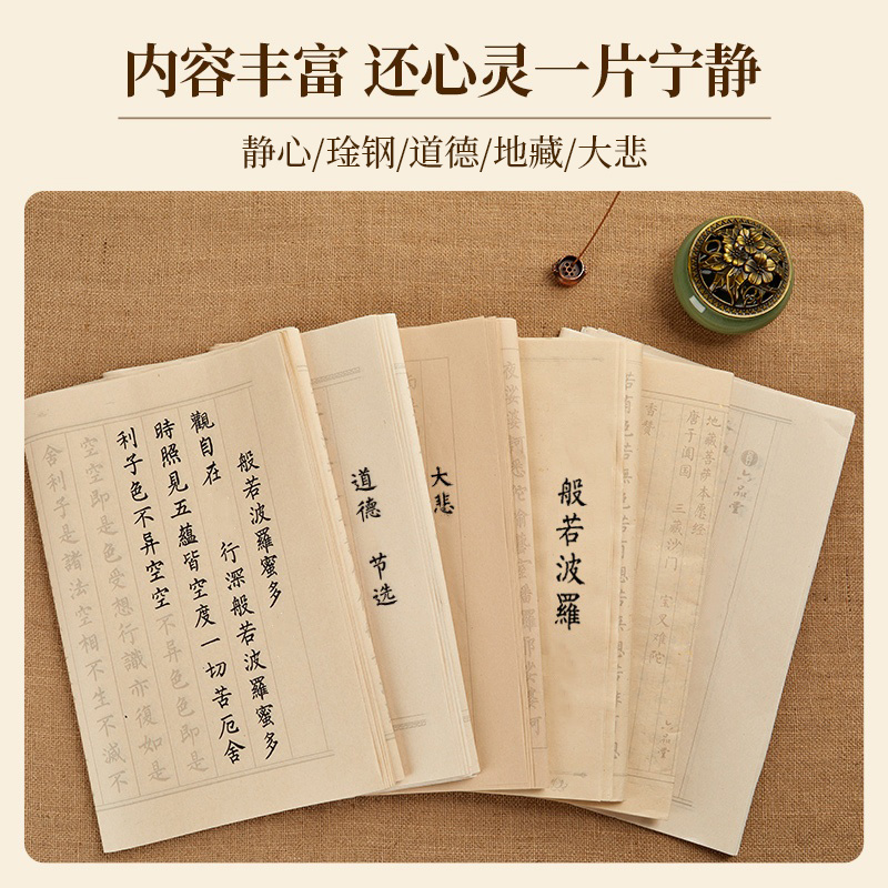 六品堂108遍静心手抄经卷道德经临摹软笔练字帖成人抄写本大悲咒地藏经书手抄本毛笔字帖初学者入门套装练习