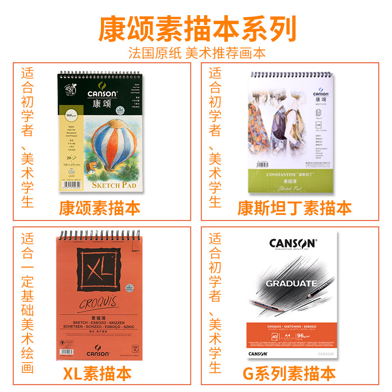 法国康颂1557素描本4K8K速写本180g美术生专业素描纸上翻线圈速写本手绘彩铅马克笔初学者中粗细纹无酸纸