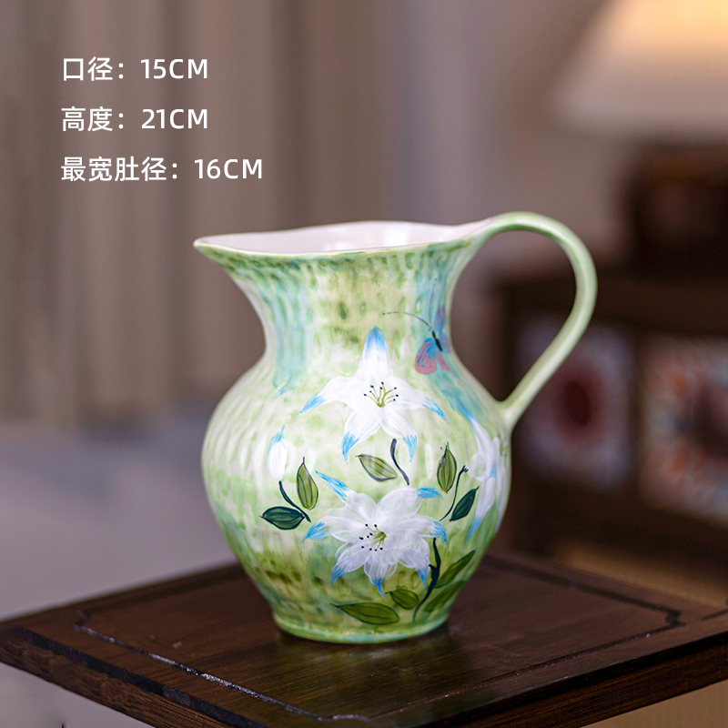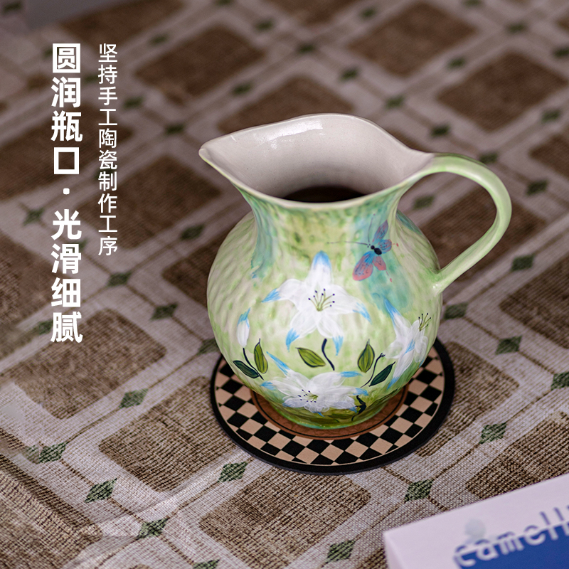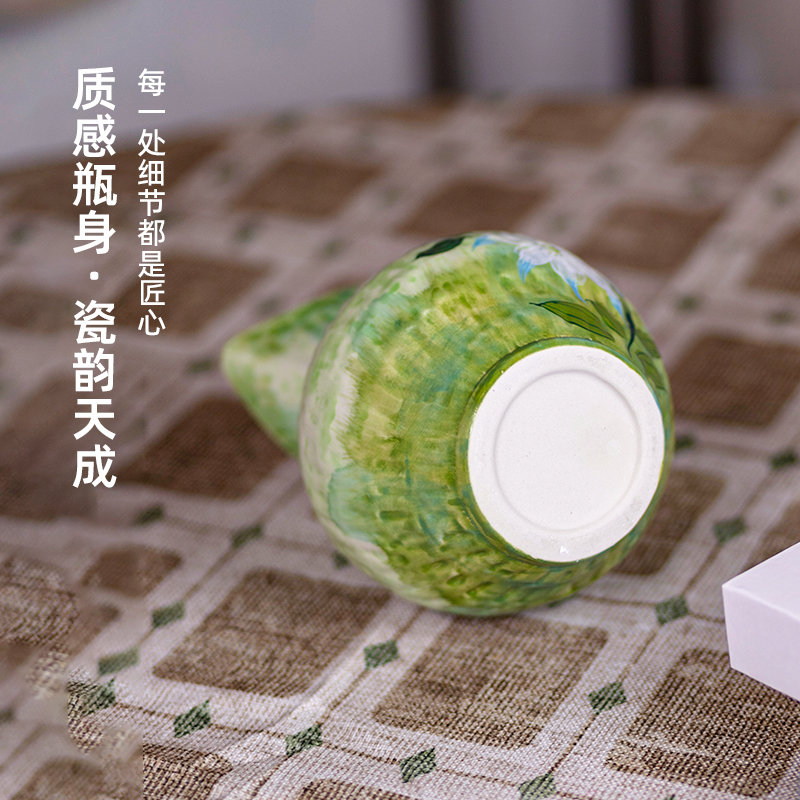 景德镇水培插花器中式装饰摆件玄关桌面民宿客厅手绘单耳陶瓷花瓶