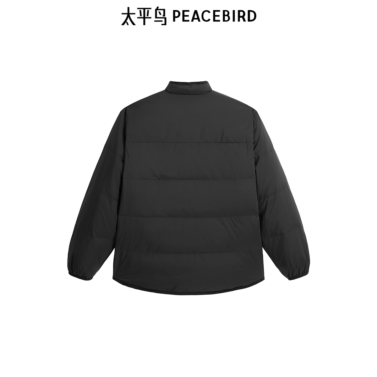 太平鸟男装 新中式立领羽绒服黑色国潮冬季防寒面包服外套男