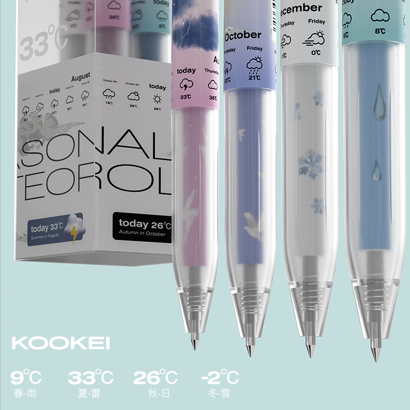 KOOKEI酷叶新款限定四季天气中性笔春雨夏雷秋日冬雪学生透明杆考试0.5按动刷题黑色速干水笔限量款套装送礼