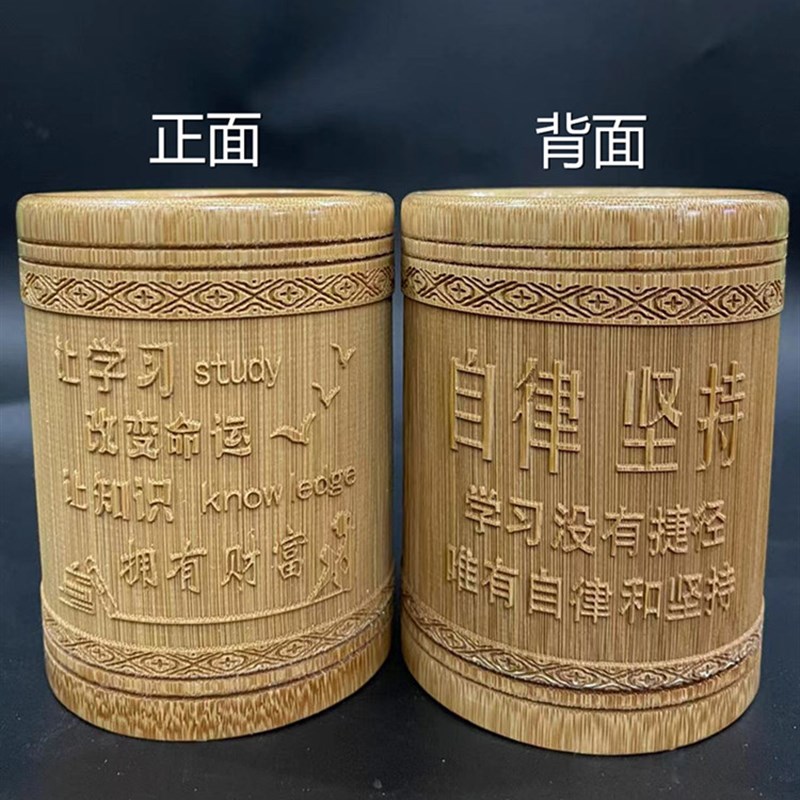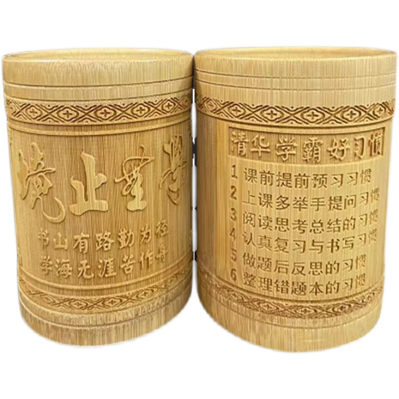 现货速发书房桌面笔筒高端摆件雕刻鼓励学习语录竹雕刻送人礼品大